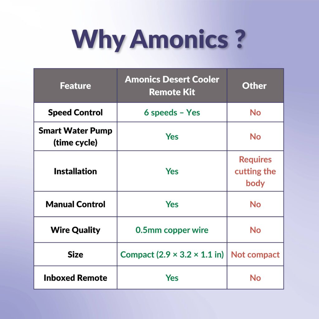 Key Features – Amonics Desert/Air Cooler Remote Kit with Remote