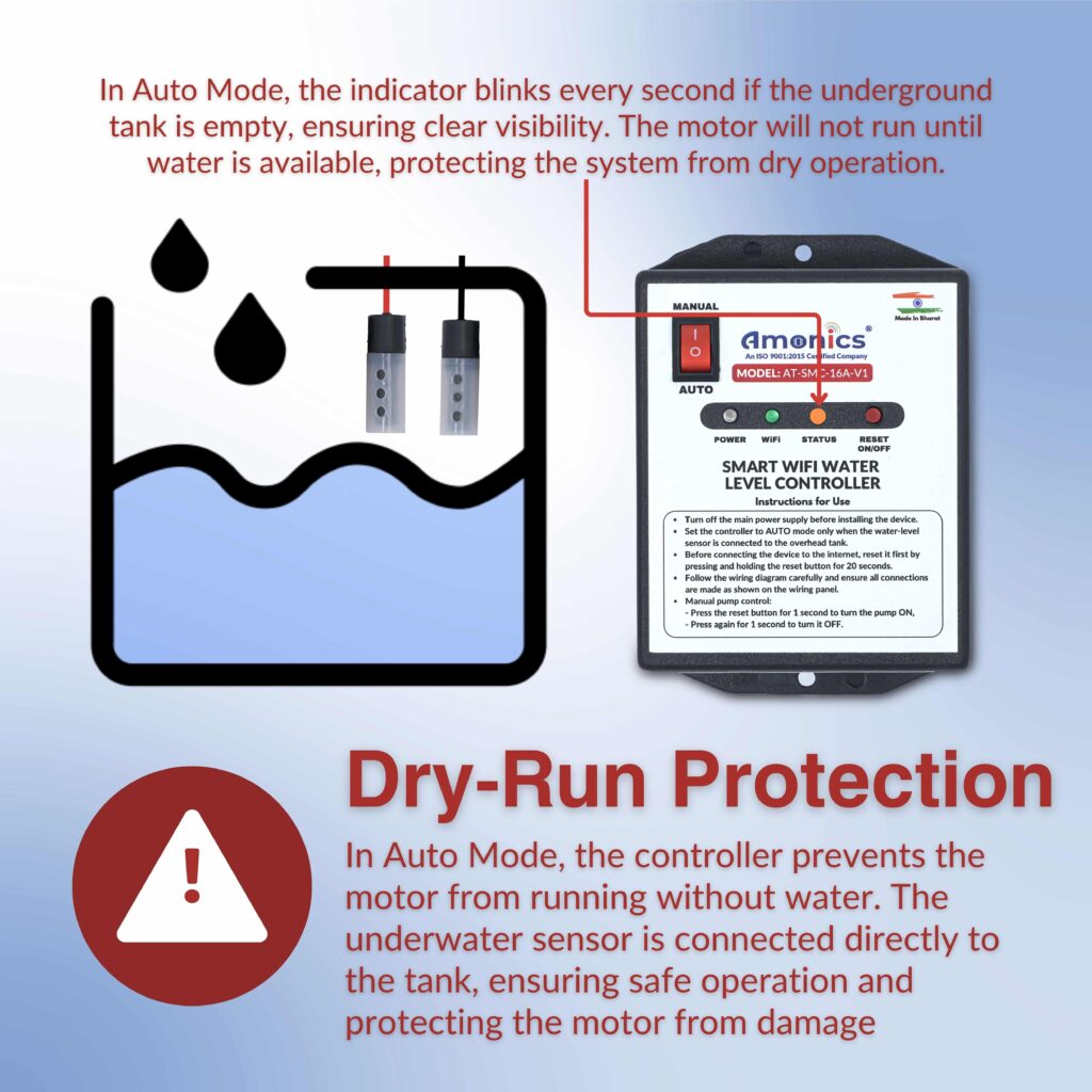 | 🛡️ Dry Run Protection | Automatically stops the motor to prevent damage when water is low |